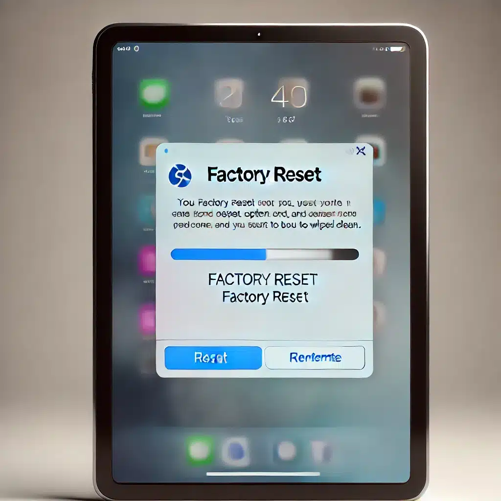 An iPad in the process of being factory reset. The image shows an impression of factory reset