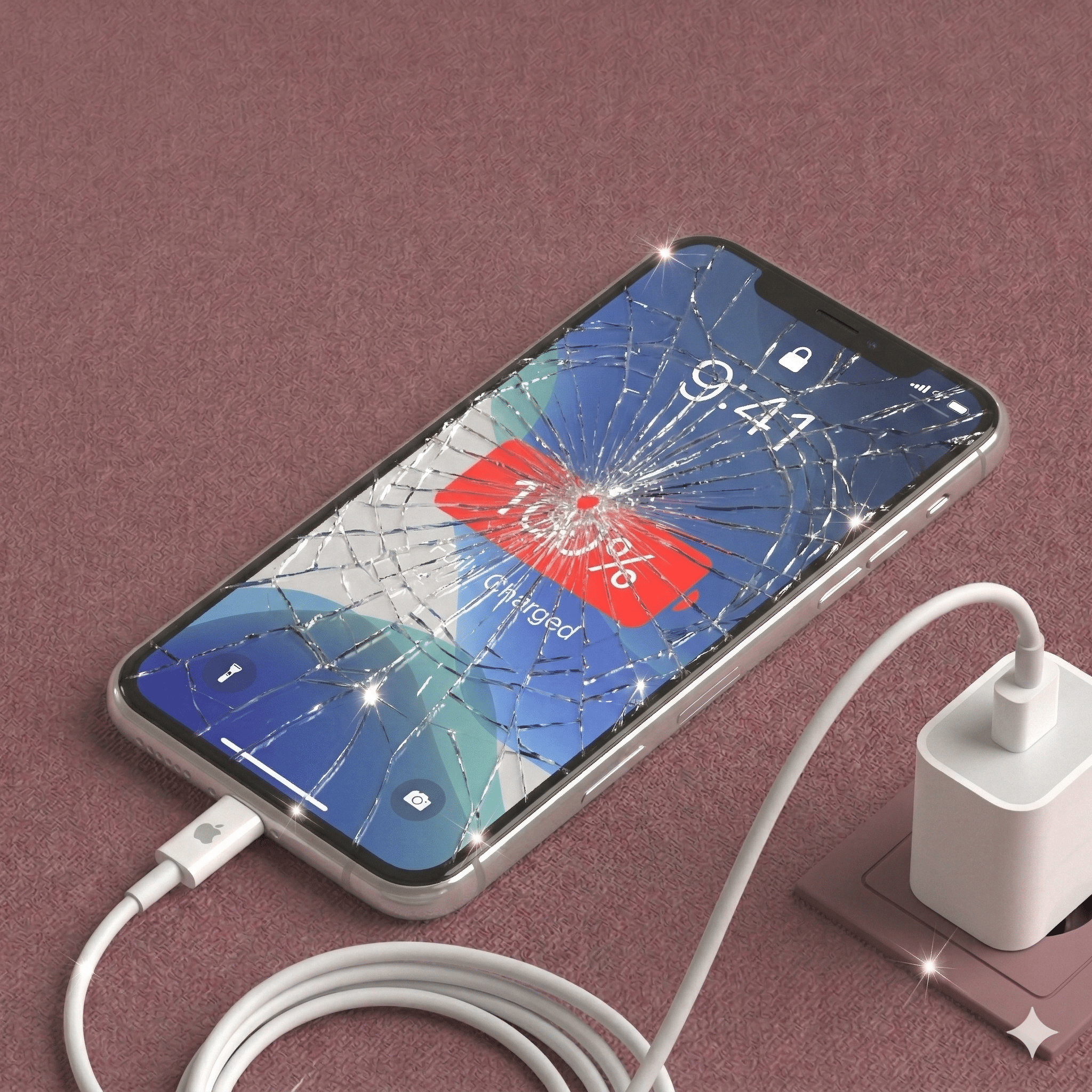 - Spider-web Cracks: Shattered glass across the 6.5" display.